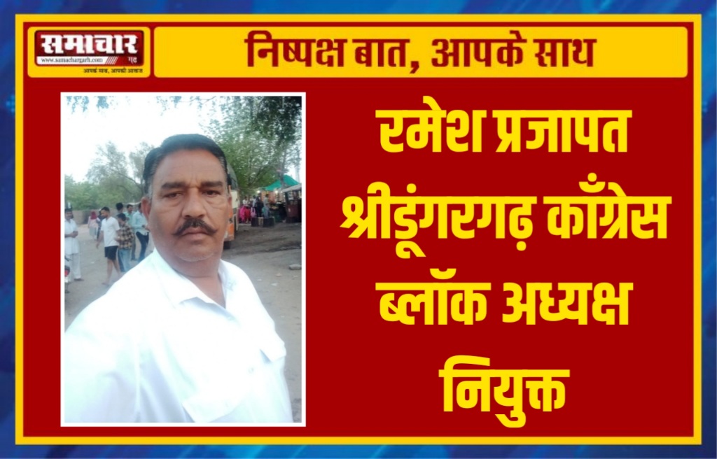 समाचार-गढ़, श्रीडूंगरगढ़। जिला कांग्रेस कमेटी के निर्देश पर कांग्रेस ओबीसी प्रकोष्ठ के बीकानेर जिलाध्यक्ष रेवंतराम संवाल ने संगठन के अध्यक्ष हरसहाय यादव की अनुशंसा पर बीकानेर जिले के खाजूवाला, छतरगढ़ व श्रीडूंगरगढ़ और सूडसर ब्लॉको में ब्लॉक अध्यक्षों की नियुक्ति की है। श्रीडूंगरगढ़ ब्लॉक में रमेश प्रजापत को ओबीसी प्रकोष्ठ के ब्लॉक अध्यक्ष पद पर नियुक्त किया गया है। वहीं सूडसर ब्लॉक की जिम्मेदारी निहालचंद विश्नोई को दी गई है।