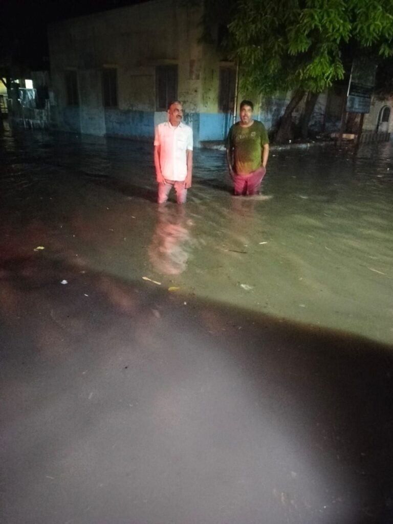 श्रीडूंगरगढ़। शनिवार को दिनभर कस्बे में बादल छाए रहे और देर शाम जमकर बरसात हुई। बरसात के बाद कस्बे के कई निचले इलाकों में पानी भर गया। स्थिति इतनी गंभीर रही कि उपजिला अस्पताल के चारों ओर भी पानी जमा हो गया ।अस्पताल परिसर के बाहर जलभराव होने से भर्ती मरीजों के परिजनों को भारी परेशानी का सामना करना पड़ा। बरसात के कारण रास्तों पर कीचड़ और पानी भर जाने से लोगों की आवाजाही भी प्रभावित हुई।