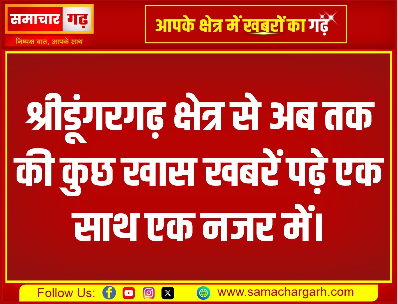 श्रीडूंगरगढ़ क्षेत्र से अब तक की कुछ खास खबरें पढ़े एक साथ एक नजर में।