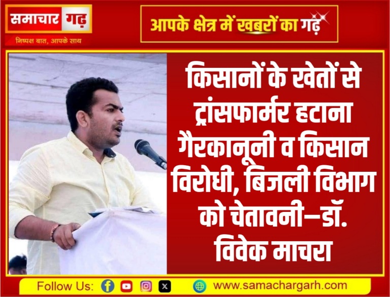 समाचार गढ़, 30 अगस्त 2025। श्रीडूंगरगढ़ क्षेत्र के किसानों पर दमनात्मक रूप से खेतों में जाकर जबरन बिजली विभाग के अधिकारियों द्वारा ट्रांसफार्मर उतारा जाना बिजली विभाग की मनमानी है । युवा लीडर डॉ विवेक माचरा ने भाजपा सरकार और बिजली विभाग की किसान विरोधी नीति का विरोध करते हुए कहा है कि किसान फसल तैयार होते ही सबसे पहले बिजली के बिल भरता है लेकिन इस समय जब फसल तैयार हो रही है, बिजली विभाग के अधिकारी किसान को अपमानित करने के लिए जबरन वसूली और भ्रष्टाचार का मार्ग बनाने के लिए ग़ैर क़ानूनी रूप से ट्रांसफार्मर उतार रहे हैं, जिसे किसी भी सूरत में सहन नहीं किया जाएगा डॉ विवेक माचरा में स्थानीय विधायक ताराचंद सारस्वत को याद दिलाते हुए कहा कि विधायक कुंभकर्णी नींद में सो रहे हैं और बिजली विभाग को आगे करके विधायक और भाजपा अपनी किसान विरोधी नीतियों को पूरा करने के कुत्सित प्रयास कर रहे हैं जिसे किसी भी सूरत में सहन नहीं किया जाएगा