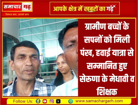ग्रामीण बच्चों के सपनों को मिली पंख, हवाई यात्रा से सम्मानित हुए सेरूणा के मेधावी व शिक्षक