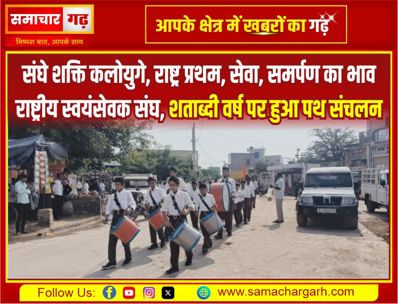 संघे शक्ति कलोयुगे, राष्ट्र प्रथम, सेवा, समर्पण का भाव राष्ट्रीय स्वयंसेवक संघ, शताब्दी वर्ष पर हुआ पथ संचलन
