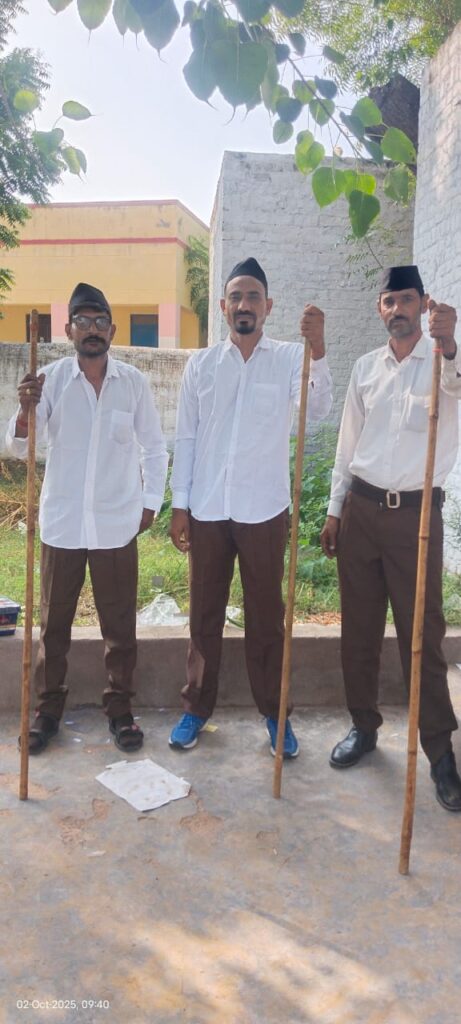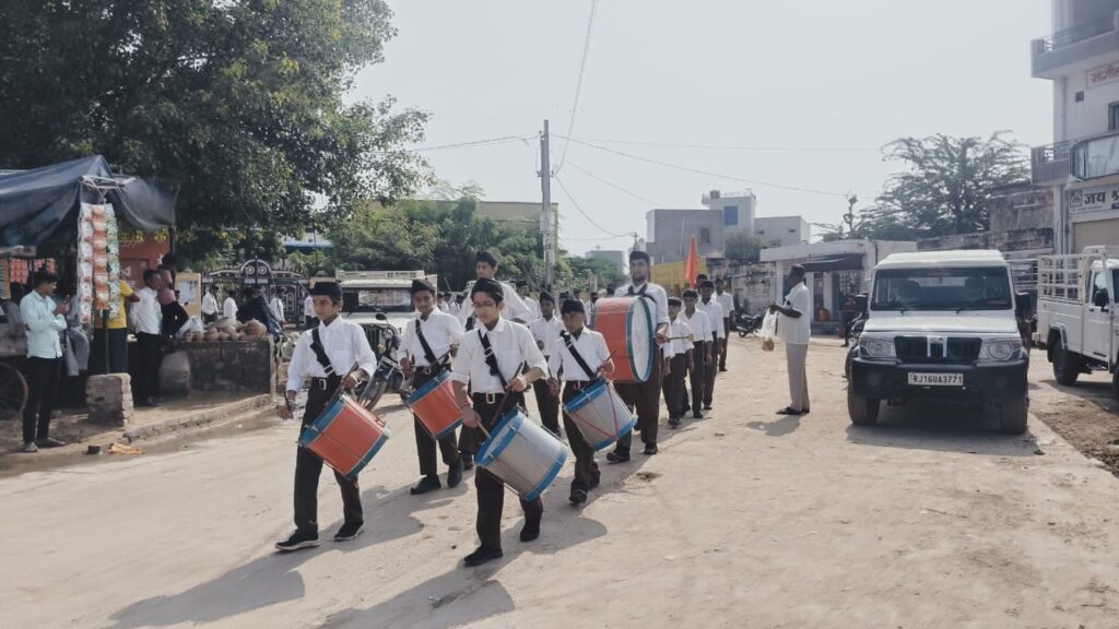राष्ट्रीय स्वयंसेवक संघ के स्थापना के शताब्दी वर्ष 100 वर्ष पूर्ण होने पर आज विजयादशमी के शुभ अवसर पर क्षेत्र के मोमासर खंड के रामसरा मंडल के अंतर्गत ग्राम बिग्गा में रामसरा मंडल के गांव कीतासर जैसलसर सातलेरा और बिग्गा के सैकड़ों स्वयंसेवकों द्वारा सामूहिक भव्य पथ संचलन ग्राम बिग्गा में आयोजित किया गया।