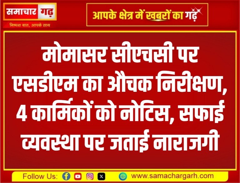 मोमासर सीएचसी पर एसडीएम का औचक निरीक्षण, 4 कार्मिकों को नोटिस – सफाई व्यवस्था पर जताई नाराजगी