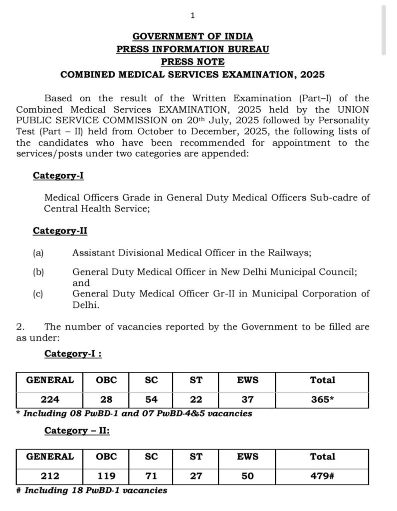 भारत सरकार के प्रेस इन्फॉर्मेशन ब्यूरो द्वारा जारी आधिकारिक प्रेस नोट के अनुसार, UPSC CMS परीक्षा का लिखित भाग 20 जुलाई 2025 को आयोजित हुआ था, जबकि व्यक्तित्व परीक्षण अक्टूबर से दिसंबर 2025 के बीच संपन्न हुआ। दोनों चरणों में उत्कृष्ट प्रदर्शन के बाद डॉ. अंकित ज्यानी का चयन केंद्रीय स्वास्थ्य सेवाओं के लिए हुआ है।