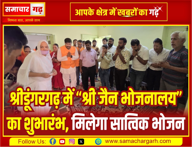 समाचार गढ़, 2 अक्टूबर 2025, श्रीडूंगरगढ़। नगरवासियों और आगंतुकों के लिए आज एक महत्वपूर्ण शुरुआत हुई। “श्री जैन भोजनालय” का उद्घाटन जैन संस्कार विधि से सम्पन्न हुआ। इस अवसर पर साध्वी संगीतश्री जी और साध्वी डॉ. परमप्रभा जी ने मंगल पाठ कर सभी को आशीर्वाद दिया। उद्घाटन समारोह मालू भवन के पास आयोजित किया गया, जिसमें नगर के गणमान्य नागरिक, समाजजन और अन्य अतिथि उपस्थित रहे।