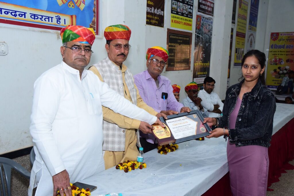 इसके साथ ही कक्षा 10वीं व 12वीं में 75 प्रतिशत से अधिक अंक प्राप्त करने वाले विद्यार्थियों को श्री हड़मान जी बोदलिया के सौजन्य से प्रशस्ति पत्र प्रदान कर सम्मानित किया गया। मंच संचालन दिव्यांशी भदरेचा व हनुमान धनेरवा द्वारा किया गया।