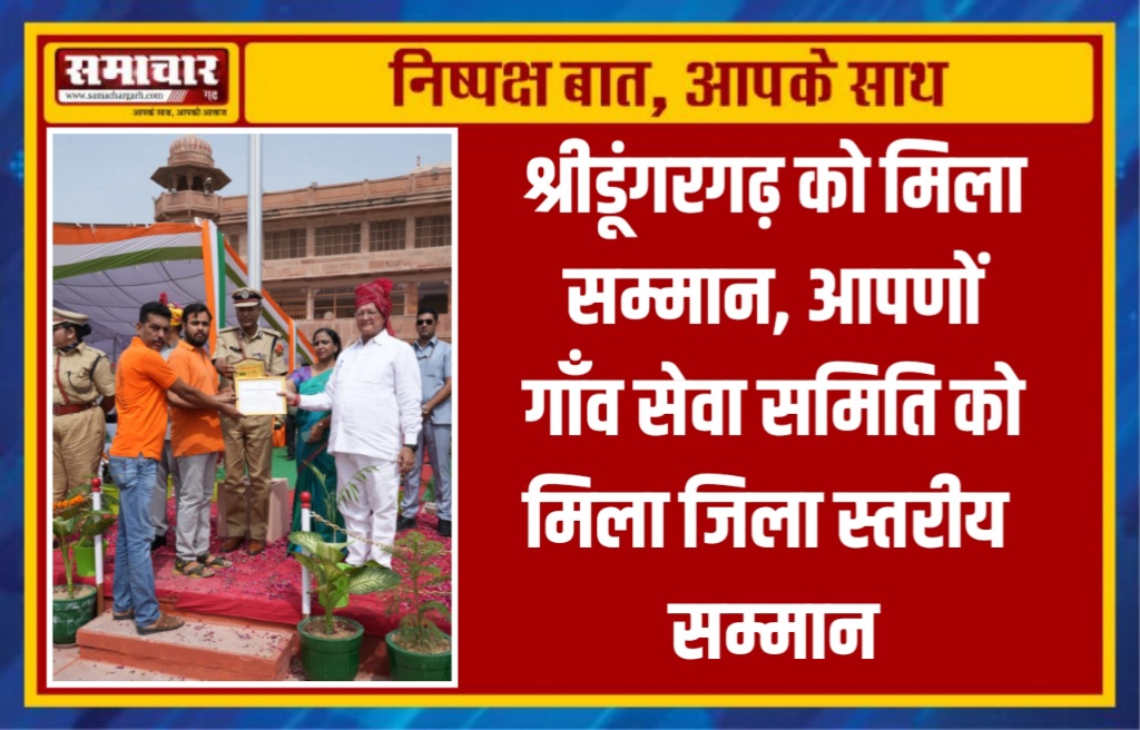 समाचार-गढ़, 16 अगस्त, श्रीडूंगरगढ़। कहीं दुर्घटना होने पर सबसे पहले पहुंचने, चिकित्साकर्मियों के साथ घायलों का ईलाज करने, किसी आयोजन में कर्मठता से योगदान देने, जीव जंतु मात्र के प्रति सेवा भाव से कार्य करने की विशेषताओं वाली पहचान आपणों गांव श्रीडूंगरगढ़ सेवा समिति की पूरे क्षेत्र में बन गई है। समिति के सेवादार समिति के बैनर तले अपनी सेवाएं दे रहें है। गमंगलवार को राष्ट्रीय पर्व पर क्षेत्र की इस समिति का सम्मान जिला स्तरीय समारोह में हुआ। शिक्षा मंत्री बी. डी. कल्ला, संभागीय