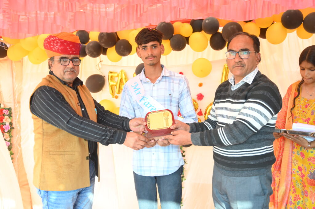 कार्यक्रम के मुख्य अतिथि राजस्थान शिक्षण संस्थान संघ के प्रदेश अध्यक्ष कोडाराम भादू रहे। इस अवसर पर संस्था प्रधान ने विद्यार्थियों को संबोधित करते हुए उनके उज्ज्वल भविष्य की कामना की। उन्होंने गत वर्ष कक्षा 10 में टॉप करने वाली छात्रा कृष्णा शर्मा को प्रतीक चिन्ह एवं 5100 रुपये की राशि प्रदान की। साथ ही इस वर्ष बोर्ड परीक्षा में तहसील टॉप करने वाले विद्यार्थी को 5100 रुपये नकद एवं स्कूटी भेंट करने की घोषणा की।