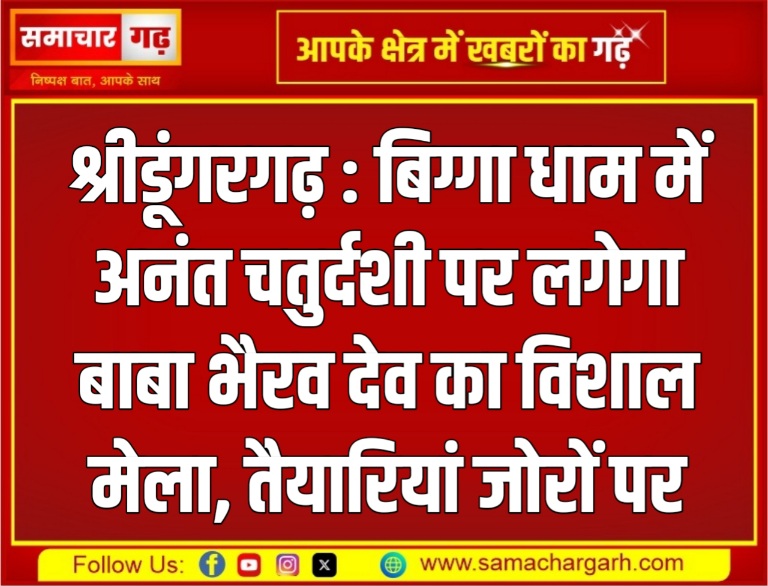 श्रीडूंगरगढ़ : बिग्गा धाम में अनंत चतुर्दशी पर लगेगा बाबा भैरव देव का विशाल मेला, तैयारियां जोरों पर