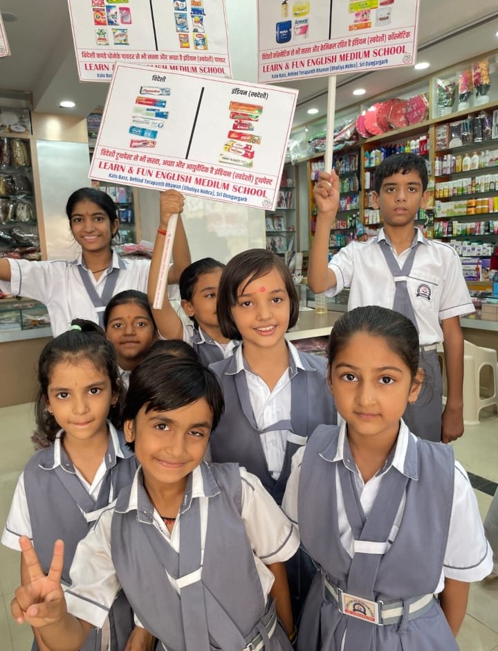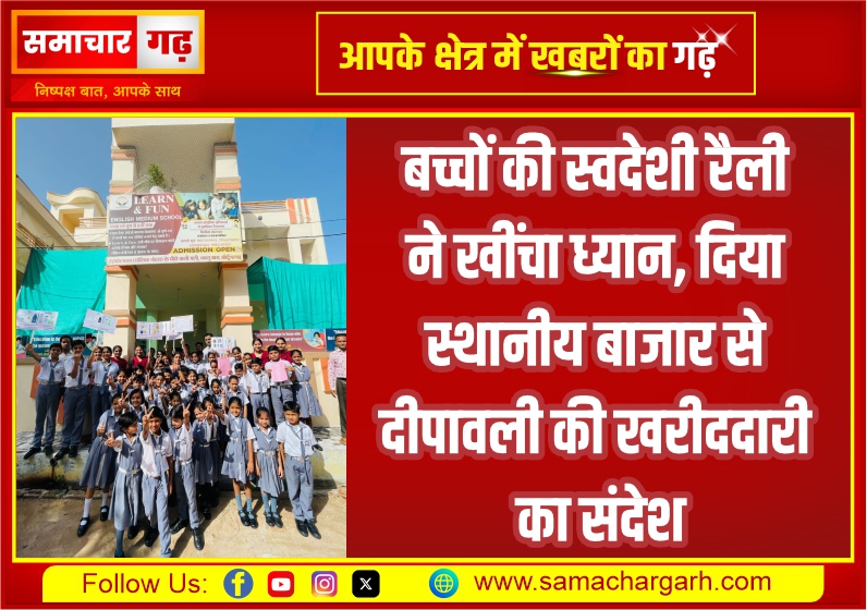 बच्चों की स्वदेशी रैली ने खींचा ध्यान, दिया स्थानीय बाजार से दीपावली की खरीददारी का संदेश