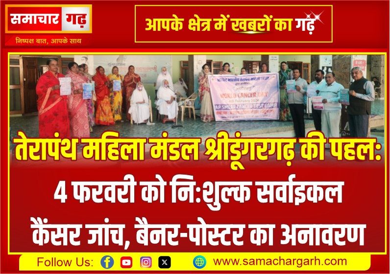 तेरापंथ महिला मंडल श्रीडूंगरगढ़ की पहल: 4 फरवरी को निःशुल्क सर्वाइकल कैंसर जांच, बैनर-पोस्टर का अनावरण