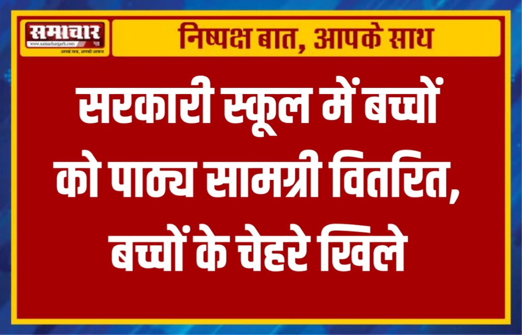 सरकारी स्कूल में बच्चों को पाठ्य सामग्री वितरित, बच्चों के चेहरे खिल उठे