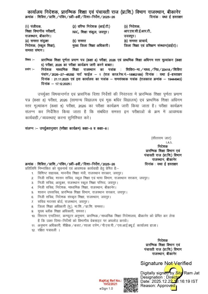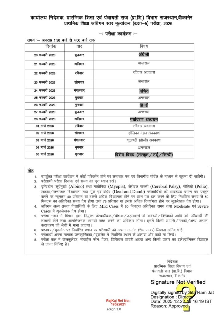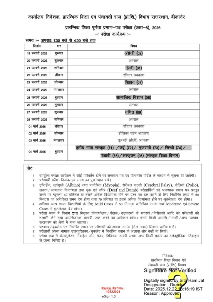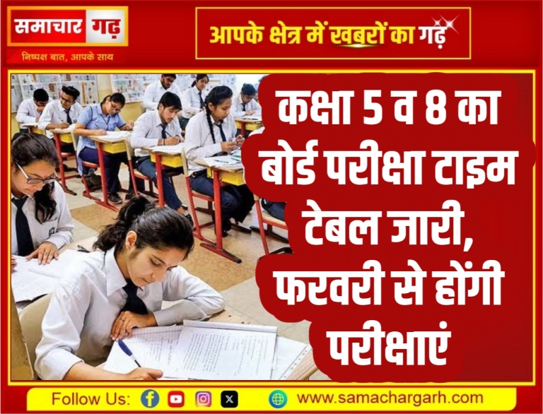 कक्षा 5 व 8 का बोर्ड परीक्षा टाइम टेबल जारी, फरवरी से होंगी परीक्षाएं
