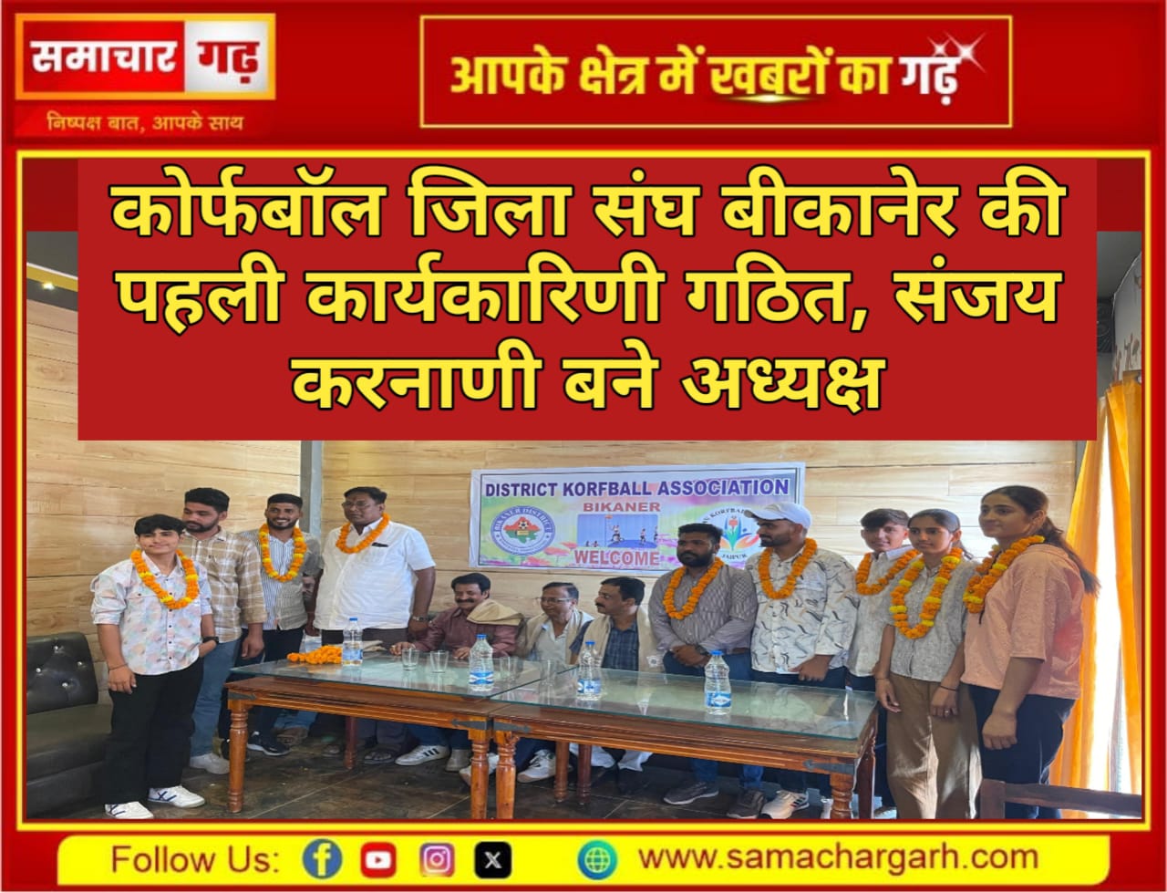 समाचार गढ़ 26 मई 2025 भारत सरकार द्वारा मान्यता प्राप्त खेल कोर्फबॉल के लिए बीकानेर जिला संघ की नई कार्यकारिणी का गठन रविवार को श्रीडूंगरगढ़ में किया गया। कार्यक्रम की अध्यक्षता मोहन पूनिया ने की।