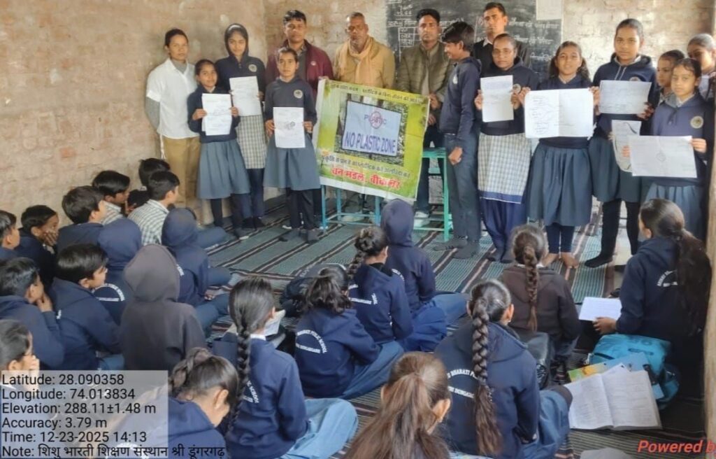 समाचार गढ़, श्रीडूंगरगढ़। सरकार के दो वर्ष पूर्ण होने के उपलक्ष्य में रेंज बीकानेर दक्षिण द्वारा सहायक वन संरक्षक बीकानेर के नेतृत्व में वन विभाग श्रीडूंगरगढ़ द्वारा कस्बे में स्थित शिशु भारती पब्लिक स्कूल,श्रीडूंगरगढ़ में सिंगल यूज प्लास्टिक और पर्यावरण संरक्षण की महता के रूप में जन -जागरूकता अभियान चलाया गया।