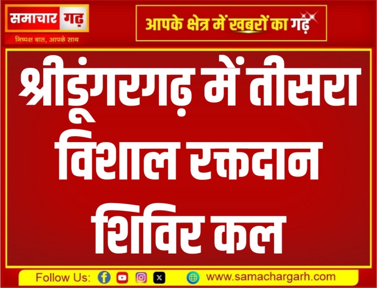 श्रीडूंगरगढ़ में तीसरा विशाल रक्तदान शिविर कल