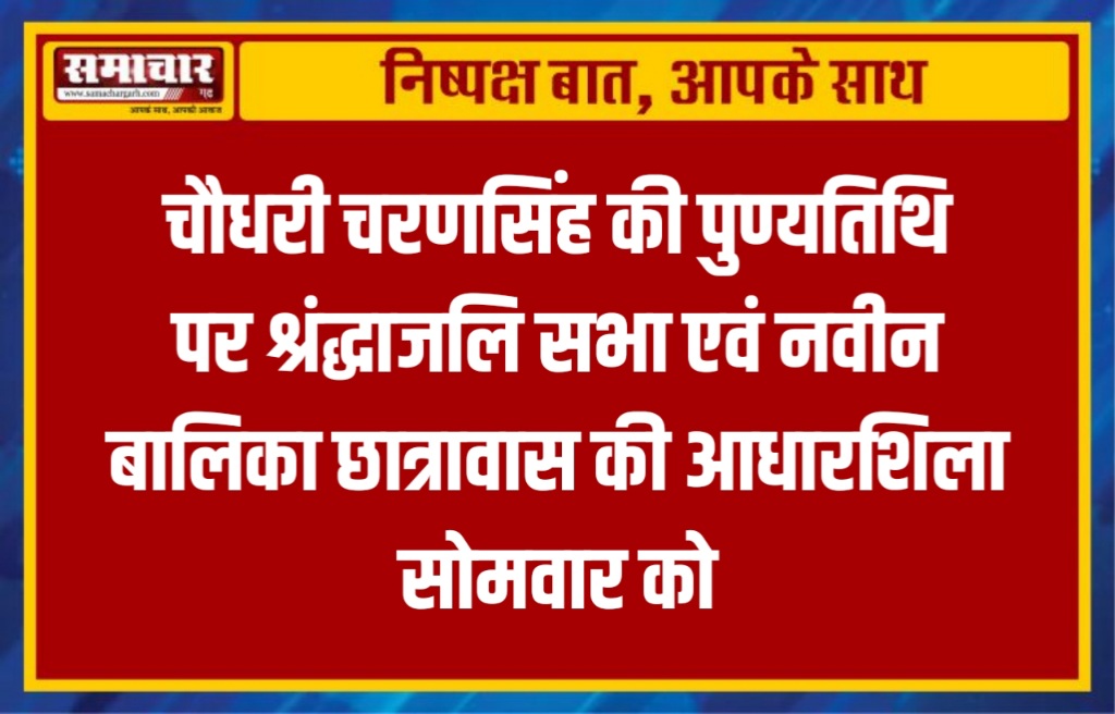 चौधरी चरणसिंह की पुण्यतिथि पर श्रंद्धाजलि सभा एवं नवीन बालिका छात्रावास की आधारशिला सोमवार को