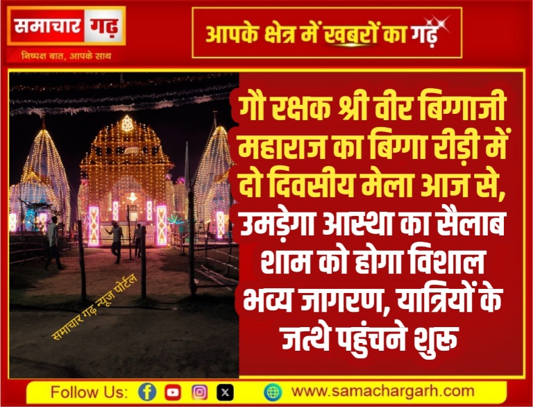 जाखड़ समाज के कुलदेव, गौ रक्षक श्री वीर बिग्गाजी महाराज की शौर्यपीठ धड़ देवली धाम रोही बिग्गा व शीश देवली धाम रीड़ी में असोज शुक्ल पक्ष की द्वादशी व त्रयोदशी को लगने वाले दो दिवसीय मेले का आज भव्य शुभारंभ हो गया है।