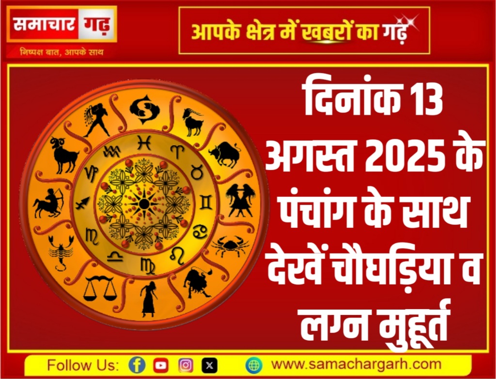 рджрд┐рдирд╛рдВрдХ 13 рдЕрдЧрд╕реНрдд 2025 рдХреЗ рдкрдВрдЪрд╛рдВрдЧ рдХреЗ рд╕рд╛рде рджреЗрдЦреЗрдВ рдЪреМрдШрдбрд╝рд┐рдпрд╛ рд╡ рд▓рдЧреНрди рдореБрд╣реВрд░реНрдд