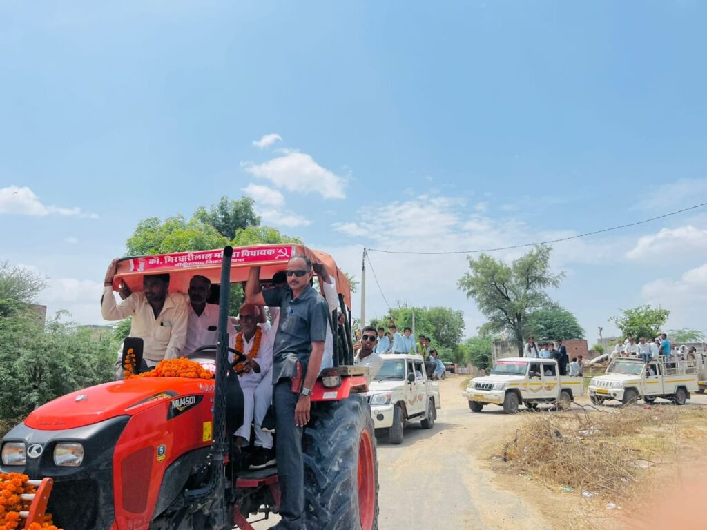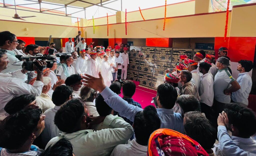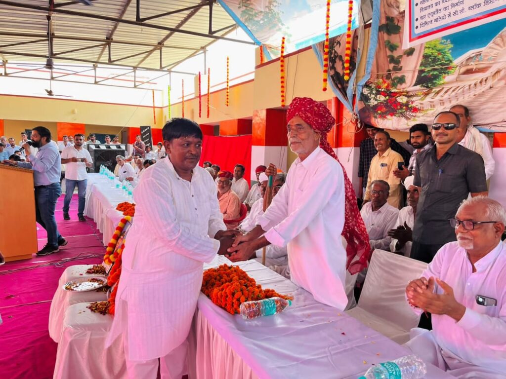 समाचार-गढ़, 22 अगस्त, श्रीडूंगरगढ़। क्षेत्रीय विधायक गिरधारीलाल महिया द्वारा अपने कार्यकाल में हुए विकास कार्यों को जन-जन को समर्पित करने के उद्देश्य से निकाली जा रही श्रीडूंगरगढ़ विकास यात्रा मंगलवार को सोनियासर के बासों में पहुंची तो विकास यात्रा का स्वागत करने के लिए ग्रामीणों का हुजूम उमड़ गया। इस दौरान विधायक महिया ने सोनियासर मीठियां ग्राम पंचायत में क़रीबन दो करोड़ के विकास कार्यों का लोकार्पण एवं शिलान्यास कर ग्रामीणों को सौगात दी तो ग्रामीणों ने है कि आगामी विधानसभा चुनावों में विधायक महिया को मज़बूत बनाने का आश्वासन दिया। इस लोकार्पण व शिलान्यास कार्यक्रम में हजारों की संख्या में श्रीडूंगरगढ़ क्षेत्र के जनप्रतिनिधिगण, नागरिक गण, महिलाओं व युवाओं की उपस्थिति रही। इससे पूर्व विकास यात्रा के सोनियासर गांव की सीमा में प्रवेश करते ही गांव के मौजीज ग्रामीणों ने विधायक महिया का गुलदस्ता भेंट करके एवं फूलमालाएँ पहनाकर अगवानी की। इसके बाद विधायक महिया ने ट्रेक्टर की स्टियरिंग थामकर ग्रामीणों की किसान यात्रा का नेतृत्व किया। सोनियासर गोदारान गांव में काफिले के साथ विधायक महिया ने शहीद हेतराम गोदारा की मूर्ति पर माला पहनाकर नमन किया।