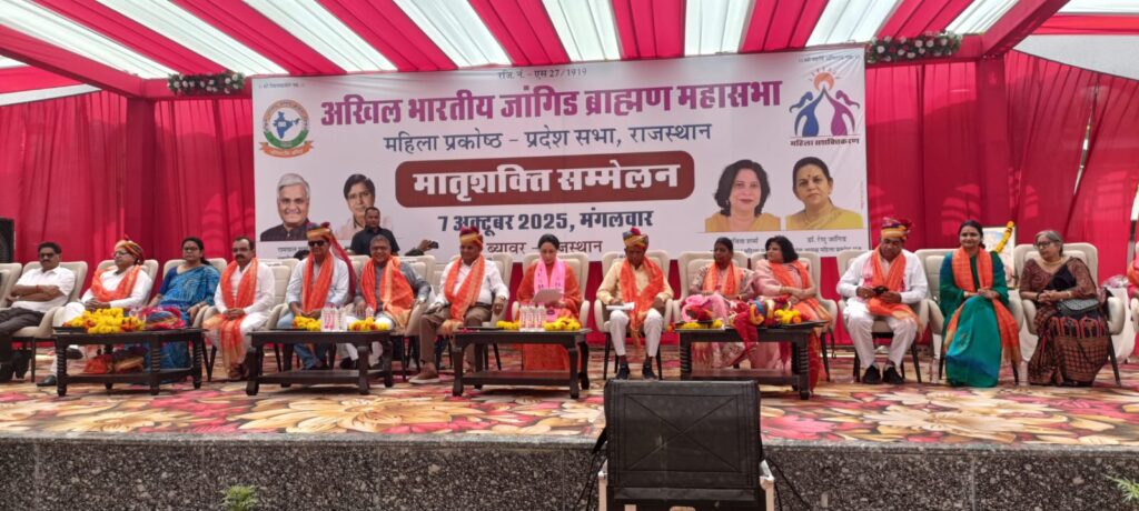श्री विश्वकर्मा कौशल विकास बोर्ड के अध्यक्ष एवं राज्य मंत्री रामगोपाल सुथार ने आज ब्यावर में आयोजित अखिल भारतीय जांगिड़ ब्राह्मण महासभा महिला प्रकोष्ठ के ‘मातृशक्ति सम्मेलन’ में भाग लिया। उन्होंने इस अवसर को “अपार गर्व और संतोष का क्षण” बताते हुए कहा कि यह आयोजन हमारी सांस्कृतिक जड़ों, सामाजिक एकता और नारी सशक्तिकरण की जीवंत अभिव्यक्ति है।