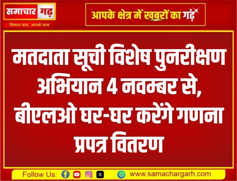 मतदाता सूची विशेष पुनरीक्षण अभियान 4 नवम्बर से, बीएलओ घर-घर करेंगे गणना प्रपत्र वितरण