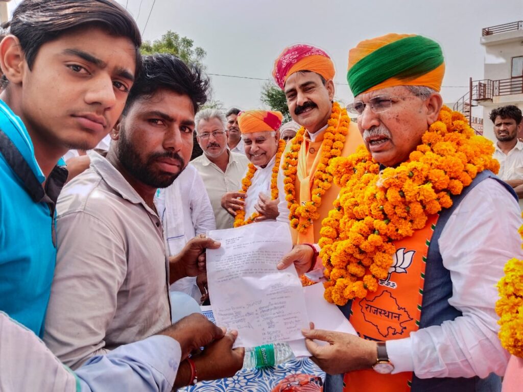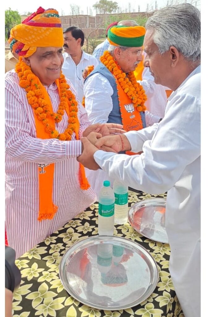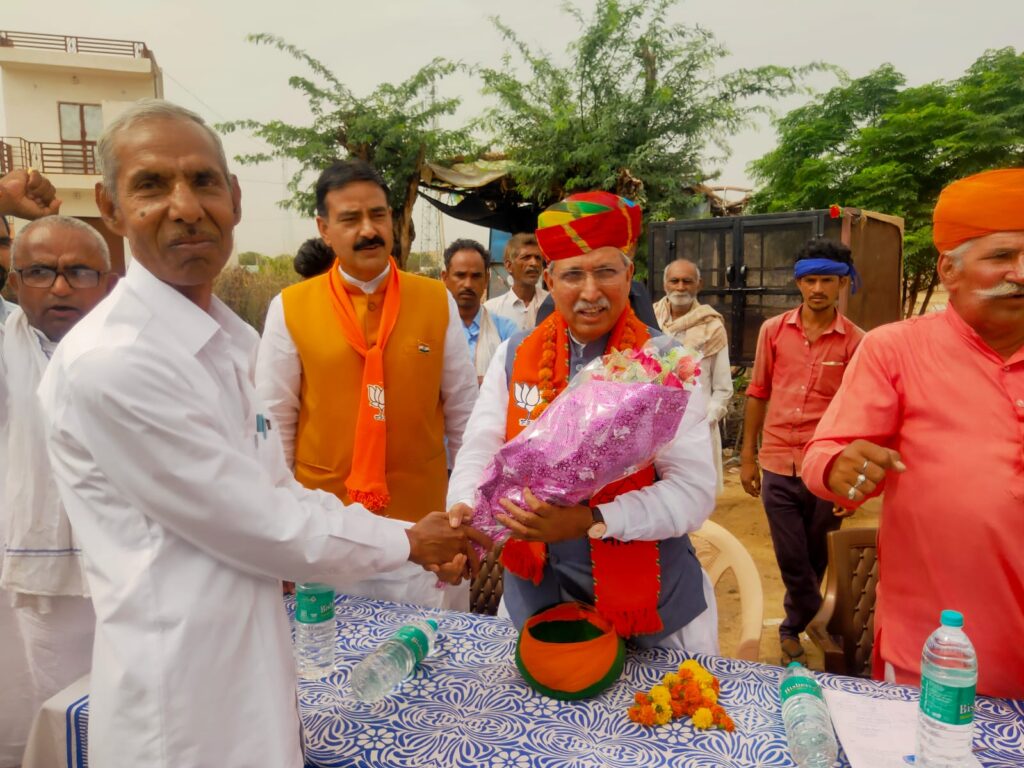 समाचार-गढ़, 30 मई 2023। केंद्र सरकार द्वारा कानून मंत्री बनाए जाने के बाद पहली बार बीकानेर आये केंद्रीय कानून मंत्री अर्जुनराम मेघवाल का बीकानेर की सीमा में प्रवेश करते ही हर गांव में ग्रामीणों द्वारा जोरदार स्वागत किया गया। कितासर गांव में ग्रामीणों द्वारा केंद्रीय मंत्री का साफा पहनाकर स्वागत किया गया। बिग्गा गांव में युवा नेता बृजलाल तावनिया सहित ग्रामीणों ने केंद्रीय मंत्री का स्वागत किया। सातलेरा गांव पहुंचने पर केंद्रीय कानून मंत्री अर्जुनराम मेघवाल का आर्मी से रिटायर्ड वारंट ऑफिसर मोहनलाल लिखाला के नेतृत्व में ग्रामीणों ने साफा एवं माल्यार्पण कर भव्य जोरदार स्वागत किया। ग्रामीणों ने केंद्रीय मंत्री को ज्ञापन सौंपकर गांव में अंबेडकर भवन बनाने तथा राजकीय उच्च माध्यमिक विद्यालय में दो कक्षा कक्षों को बनाने की मांग को लेकर स्वीकृति जारी करने की मांग की। जिस पर केंद्रीय मंत्री ने ग्रामीणों को शीघ्र ही दोनो मांगो को पूरा करने का आश्वासन दिया।