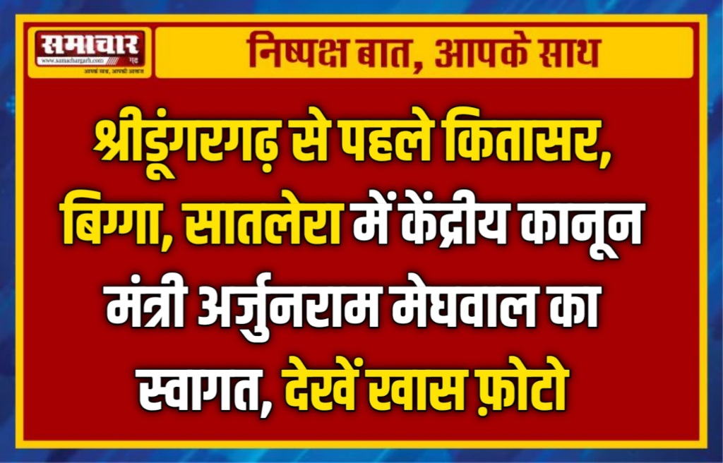 समाचार-गढ़, 30 मई 2023। केंद्र सरकार द्वारा कानून मंत्री बनाए जाने के बाद पहली बार बीकानेर आये केंद्रीय कानून मंत्री अर्जुनराम मेघवाल का बीकानेर की सीमा में प्रवेश करते ही हर गांव में ग्रामीणों द्वारा जोरदार स्वागत किया गया। कितासर गांव में ग्रामीणों द्वारा केंद्रीय मंत्री का साफा पहनाकर स्वागत किया गया। बिग्गा गांव में युवा नेता बृजलाल तावनिया सहित ग्रामीणों ने केंद्रीय मंत्री का स्वागत किया। सातलेरा गांव पहुंचने पर केंद्रीय कानून मंत्री अर्जुनराम मेघवाल का आर्मी से रिटायर्ड वारंट ऑफिसर मोहनलाल लिखाला के नेतृत्व में ग्रामीणों ने साफा एवं माल्यार्पण कर भव्य जोरदार स्वागत किया। ग्रामीणों ने केंद्रीय मंत्री को ज्ञापन सौंपकर गांव में अंबेडकर भवन बनाने तथा राजकीय उच्च माध्यमिक विद्यालय में दो कक्षा कक्षों को बनाने की मांग को लेकर स्वीकृति जारी करने की मांग की। जिस पर केंद्रीय मंत्री ने ग्रामीणों को शीघ्र ही दोनो मांगो को पूरा करने का आश्वासन दिया।