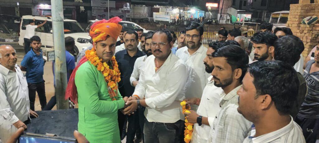 समाचार-गढ़, 16 अगस्त, श्रीडूंगरगढ़। युवा मोर्चा प्रदेशाध्यक्ष अंकित चेची पहली बार कल रात 10.30 बजे श्रीडूंगरगढ पहुंचे। प्रदेशाध्यक्ष चेची का घुमचक्कर पवन होटल पर भाजपा युवा मोर्चा शहर के नेतृत्व में जोरदार स्वागत किया गया। महेन्द्र राजपूत ने बताया की भाजयुमो प्रदेशाध्यक्ष अंकित चेची का श्रीडूगरगढ पहली बार पधारने पर सैंकड़ों कार्यकर्ताओं ने जोरो से स्वागत किया। राजस्थान भाजयुमो के प्रदेशाध्यक्ष अंकित चैची ने सरकार के भ्रष्टाचार, बेरोजगारी, महिला अत्याचार, पेपर लीक व किसानों से वादा खिलाफी व ग्रामीण क्षेत्रों में कृषि कनेक्शन में आ रही लाइट की बाध्यता जैसे मामलों में पूर्ण रूप से आवाज़ उठाने की बात कही। चेची ने कहा कि सरकार अपने कामकाज में पूरी तरह से असफल रही तथा आगामी विधानसभा चुनाव में भारतीय जनता पार्टी के पूर्ण बहुमत की सरकार बनाने पर कार्यकर्ताओ को पुर जोर तैयारी में लगने का आह्वान किया। इस अवसर रोशन अली छिंपा, पार्षद भरत सुथार, विक्रम सिंह शेखावत, मनीष गुसाई, किशन पूरी, योगेश सारस्वत, सुभकरण सिंह बनवारी नाई प्रकाश तावनिया भेराराम सेन आशीफ तंवर, प्रदीप तिवारी, मोहित शर्मा, नरेश पूरी, अरूण तावनिया, राधे नाई, द्वारकाप्रसाद, वरुण मोदी, मुकेश जाट, कालूराम, राजू जाट, कन्हैयालाल, राजू मोट, किशन नाई, दशरथ सिंह, जब्बार, ओमप्रकाश नाई, यूसूफ मनिहार, रणजीत सिंह, राजपाल सिंह, राकेश सिंह, राजूराम, बनवारी चाहर, महावीर चाहर, शेर सिंह, मदन सुथार, जयपाल सिंह, संदीप सिंह, देवीसिंह, राकेश चाहर, आरीफ, बजरंग गिरी, सकील मनिहार, अजय सेन, ओमप्रकाश सिद्ध सहित बड़ी संख्या में कार्यकर्ता उपस्थित रहे।