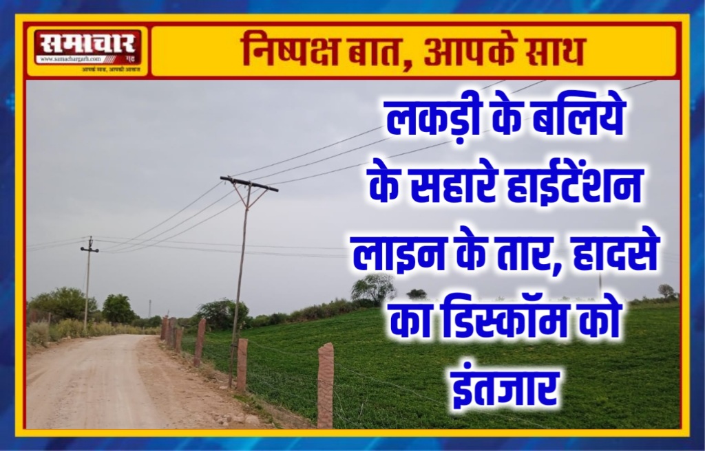 समाचार-गढ़, 14 अगस्त, (मालाराम महिया)सूडसर। दुलचासर से बेनीसर के मार्ग पर अभी सड़क बनने का कार्य चल रहा है और इस दुलचासर -बेनीसर सड़क मार्ग के ऊपर से 11 केवी बिजली लाइन गुजर रही है। इस लाइन के तारों को एक लकड़ी के बलिये के सहारे बंधे हुए है। हाईटेंशन लाइन के तारे लकड़ी के सहारे बांधकर कसे व ऊंचे किए गए है। जो जोखिमपूर्ण है और कभी भी यह लाइन हादसे का कारण बन सकते है। किन्तु डिस्कॉम इस ओर कोई ध्यान नहीं दे रहा है। यह बानगी देखिए की गांवों में घरेलू बिजली लाइन के लटकते व ढ़ीले तारों की समस्या कर कहीं है। किन्तु डिस्कॉम तो हाईटेंशन लाइन को लेकर भी उदासीन व लापरवाह बना हुआ है। क्षेत्र के लोगों ने डिस्कॉम को लकड़ी के बलिये को हटाकर यहां पर सीमेंट का खंभा लगाने की मांग की है।