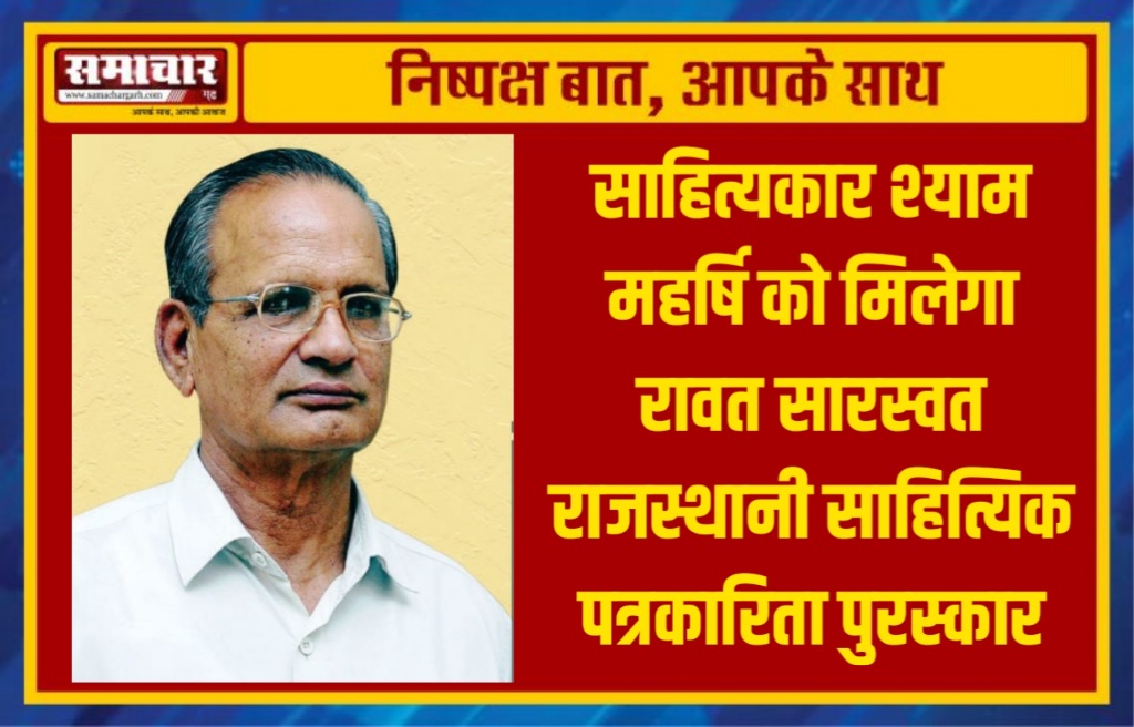 साहित्यकार श्याम महर्षि को मिलेगा रावत सारस्वत राजस्थानी साहित्यिक पत्रकारिता पुरस्कार